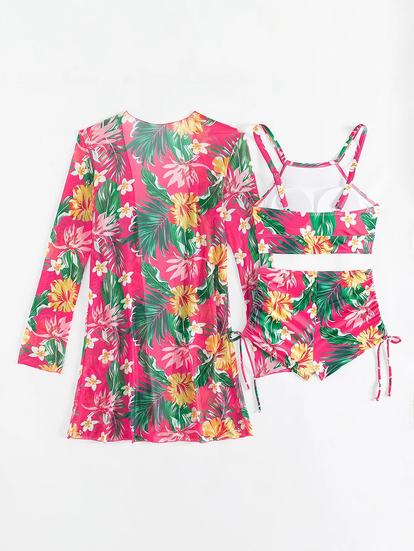 Whether you're lounging under the sun or taking a dip in the water, this three-piece set delivers a perfect blend of comfort, coverage, and standout appeal. Crafted with soft, stretchy, quick-drying fabric, it’s made for movement and all-day wear.